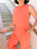 Feminine design meets go-to style. The matching set of cami and wide leg pants is the set your wardrobe's been waiting for.